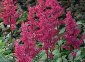Aruncus - Geitenbaard. Gedijt het best in een vochtige, humusrijke bodem. De kleine bloemen staan in grote eindstandige pluimen die geelwit (vr.) of zuiverwit (mn.) zijn.